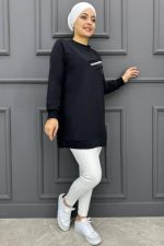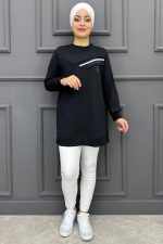 Kadın Aller Dikim Taş Detaylı Tesettür Tunik 20-SİYAH