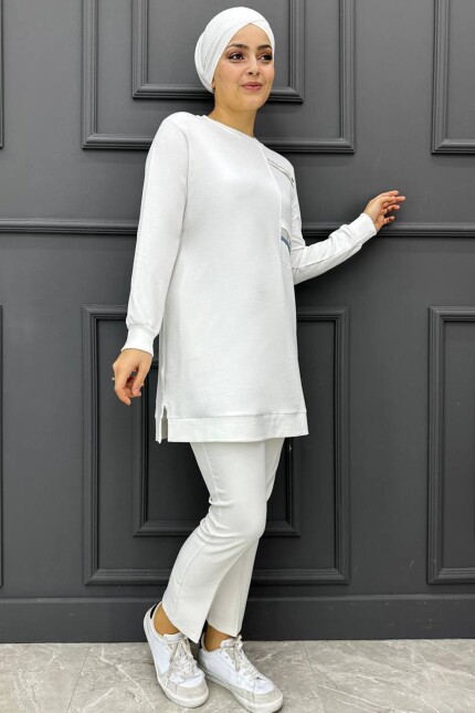 Kadın Aller Dikim Taş Detaylı Tesettür Tunik 265-EKRU