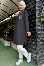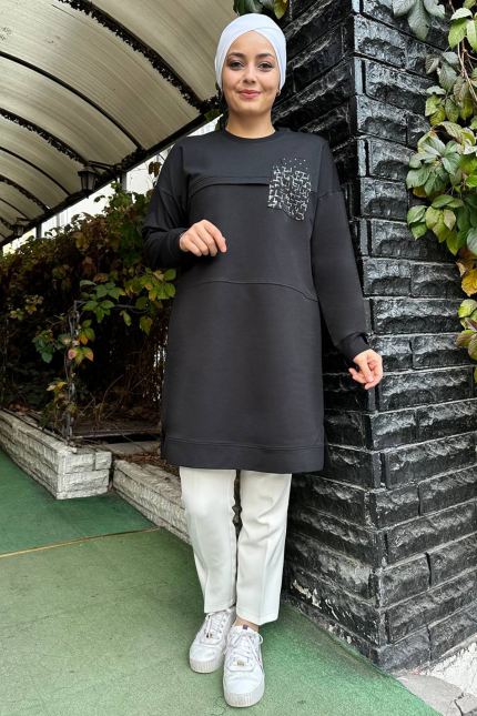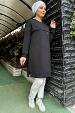 Kadın Aller Kesim Detaylı Tesettür Tunik 63-SİYAH