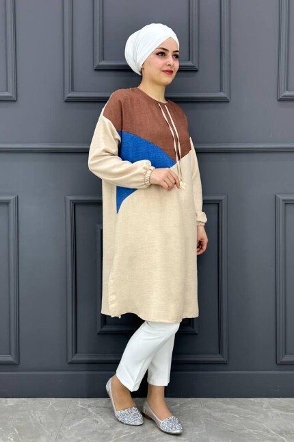 Kadın Bağucu Ve Kombin Detaylı Tesettür Tunik MDE24200282-080-Pudra
