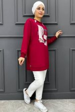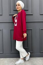 Kadın Baskı Detaylı Kombinli Tesettür Tunik 237-BORDO