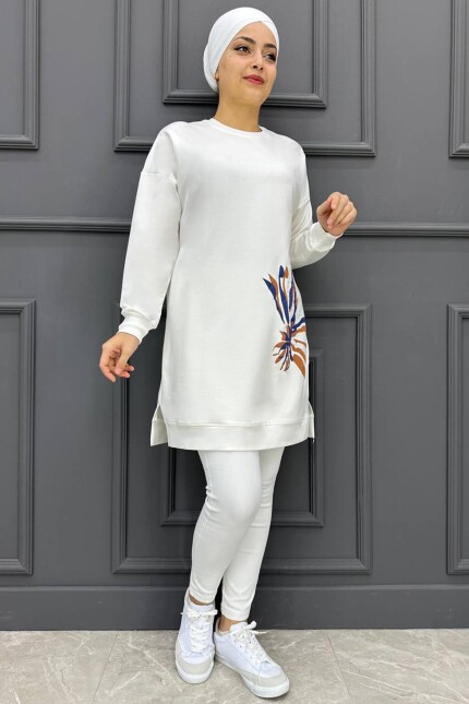 Kadın Baskı Detaylı Tesettür Tunik 22-EKRU