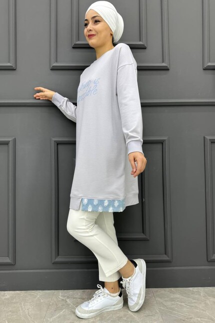 Kadın Baskı Detaylı Tesettür Tunik MDE24K10665-050-GRİ