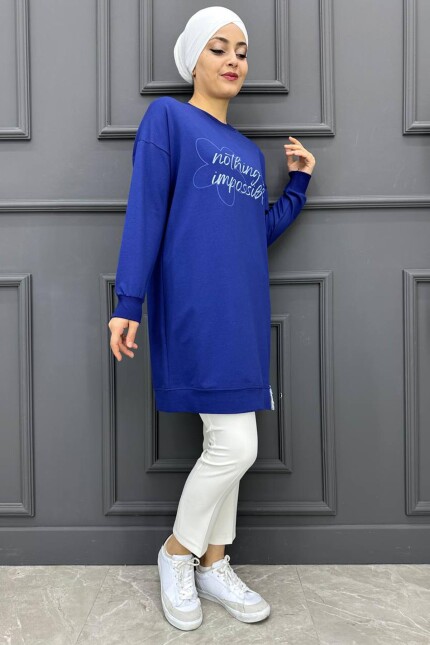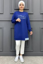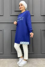 Kadın Baskı Detaylı Tesettür Tunik MDE24K10665-050-İNDİGO