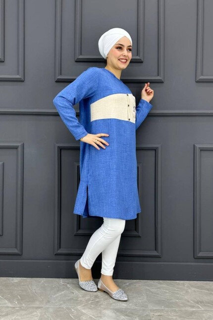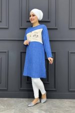 Kadın Baskı Ve Taş Detaylı Tesettür Tunik MDE24200244-080-İndigo