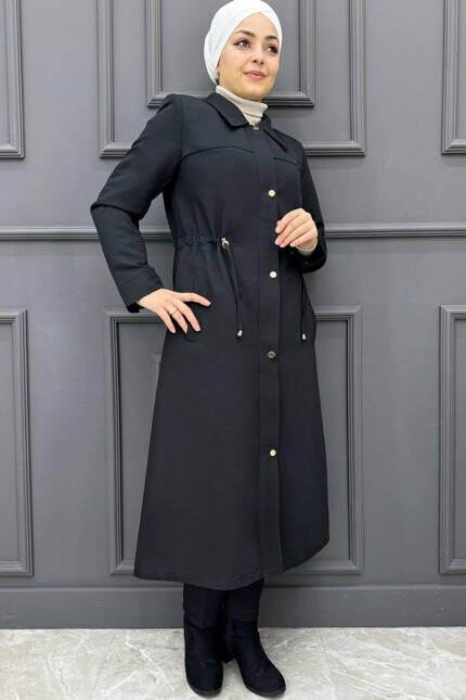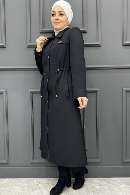Kadın Bel Bağcıklı Trenç Kaban 240-SİYAH