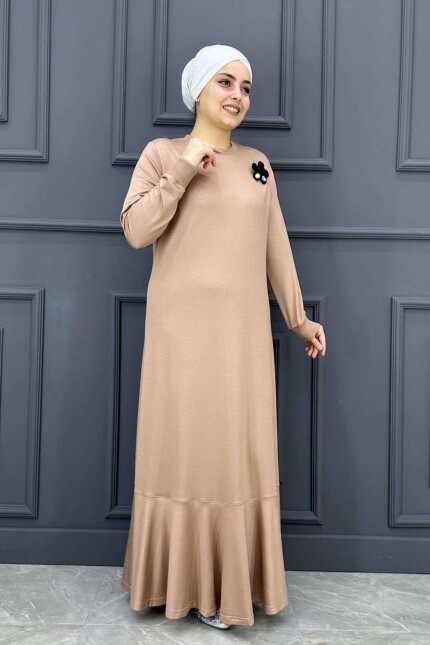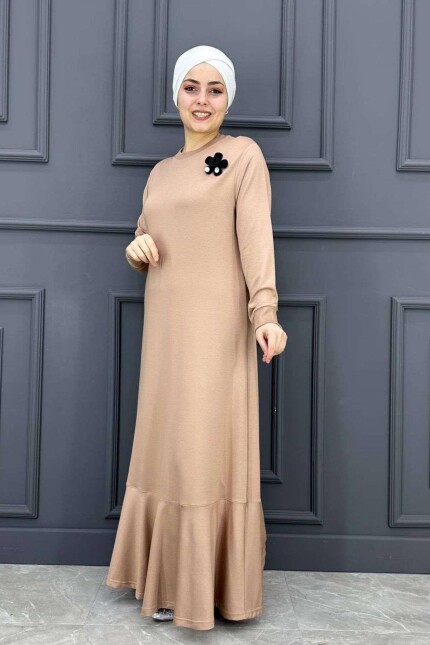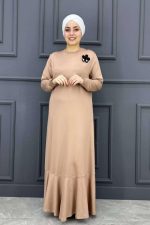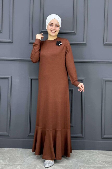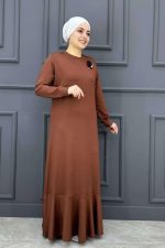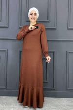 Kadın Kare Kombinli Keten Tesettür Gömlek MDE24210269-080-Kahverengi