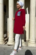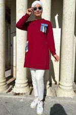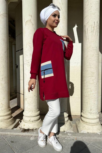 Kadın Cebi Fermuar Ve Aksesuarlı Detaylı Tesettür Tunik 61-BORDO