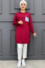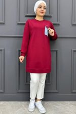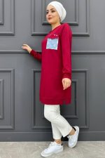 Kadın Cebi Kot Detaylı Tesettür Tunik MDE24K10678-050-BORDO
