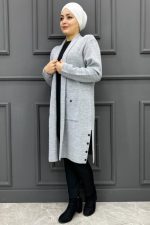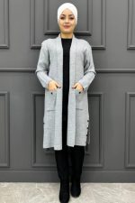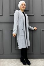 Kadın Cep Düğmeli Hırka 231-GRİ