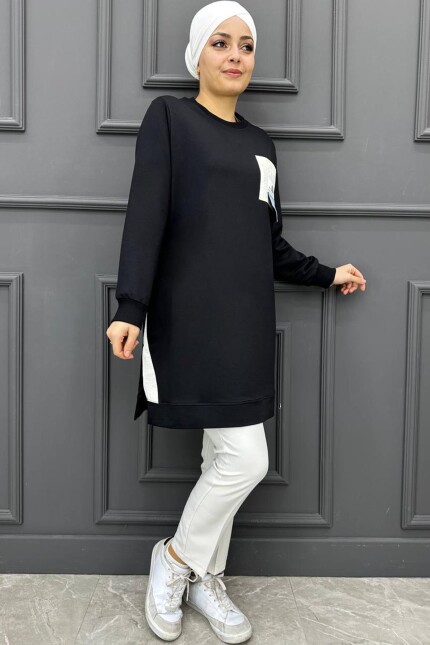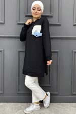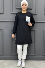 Kadın Cep Görünümlü Tesettür Tunik 253-SİYAH