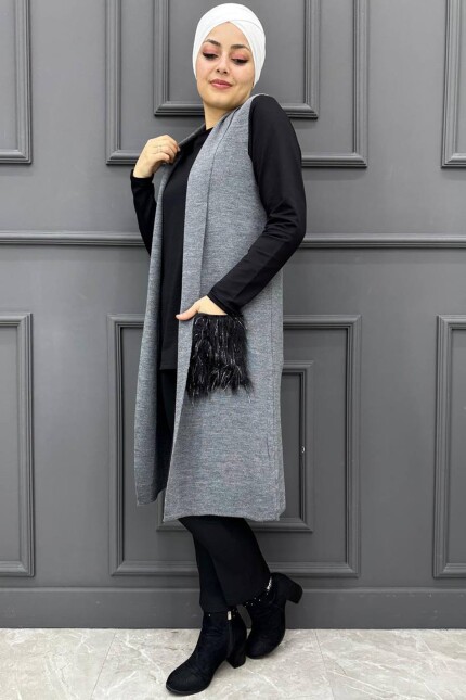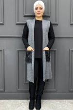 Kadın Cep Kürklü Yelek 72-GRİ