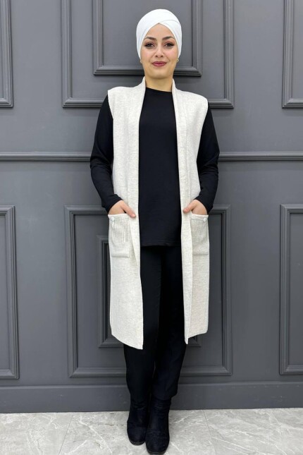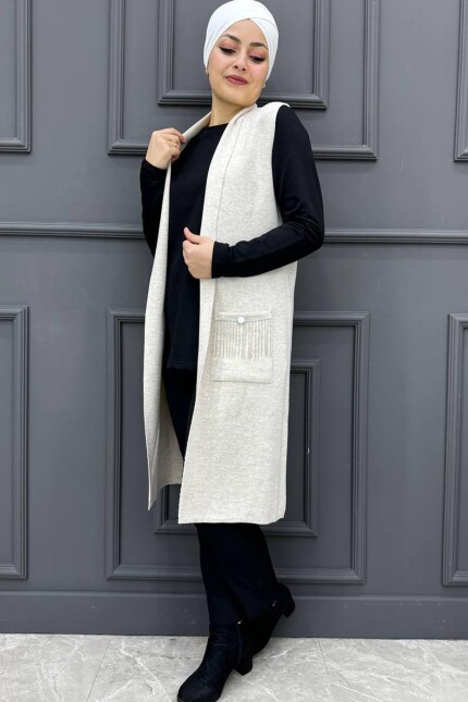 Kadın Cep Zincirli Yelek 73-BEJ