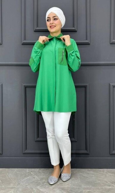 Tesettür Tunik Özellikleri: Yeni sezon tunik modeli. Tunik modelimizin kolun da ve ön kısımında fermuar detayı ile hareketlendirilmiştir. Gündelik kullanıma, özel günlerinize uygun bir üründür. Ürünümüzün farklı renk seçenekleri mevcuttur. Kumaş Özelliği: İpek saten kumaştan imal edilmiştir.Dört mevsim kullanılabilir kumaştır. Ürün renginde konsept çekimlerinden dolayı farklılık olabilir. Ürünümüz 1 / 2 / 3 / 4 bedenden oluşmaktadır.