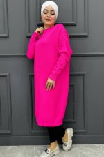 Kadın Cizgi Deseniı Tunik 96-FUŞYA