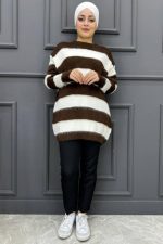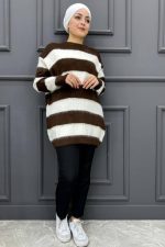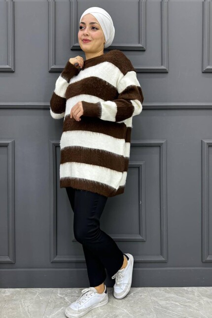 Kadın Çizgili Tunik 124-KAHVERENGİ