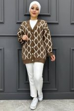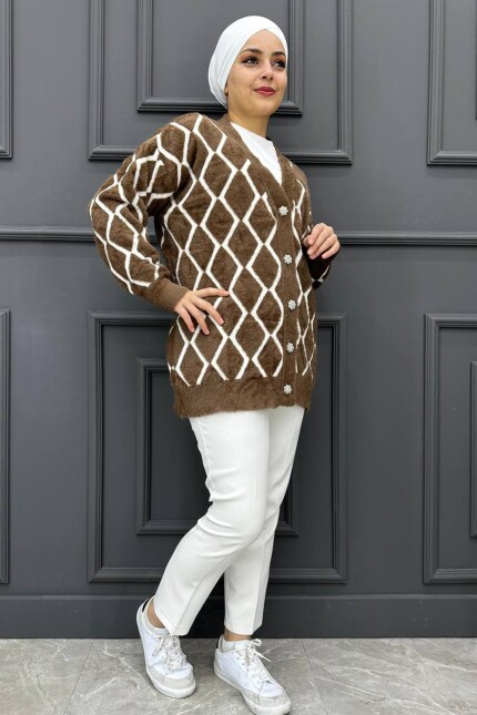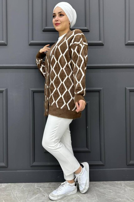 Kadın Desenli Peluş Hırka 101-KAHVERENGİ