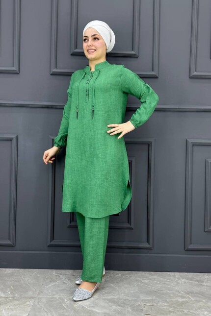 Tesettür Takım Özellikleri: Yeni sezon takım modeli. Takım modelimiz 2 / 3/ 4 / 5 beden aralığındadır. Gündelik kullanıma, özel günlerinize uygun bir üründür. Ürün en çok tercih edilen takım modelleri arasındadır. Ürünün birbirinden farklı renk seçenekleri mevcuttur. Kumaş Özelliği: Keten kumaştan imal edilmiştir.Dört mevsim kullanılabilir kumaştır. Ürün renginde konsept çekimlerinden dolayı farklılık olabilir.