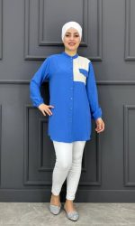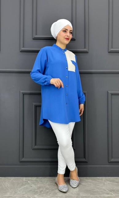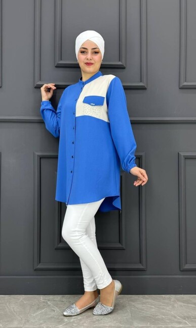 Kadın Düz Kumaş Kombin Taş Detaylı Tesettür Tunik MDE24210599-048-İndigo