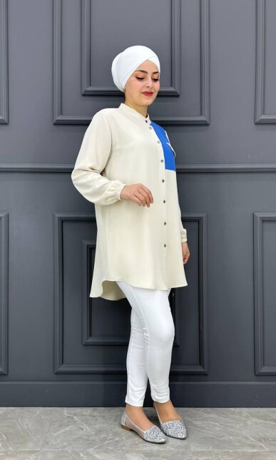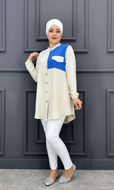 Kadın Düz Kumaş Kombin Taş Detaylı Tesettür Tunik MDE24210599-048-Taş