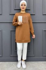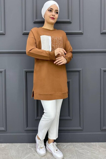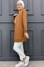 Kadın File ve Desen Detaylı Tesettür Tunik MDE24K00335-084-TABA