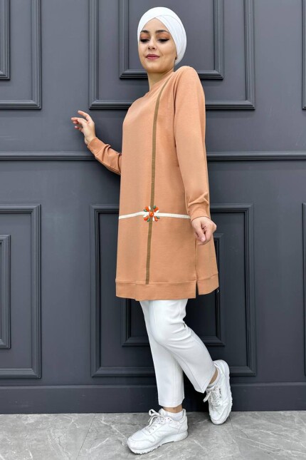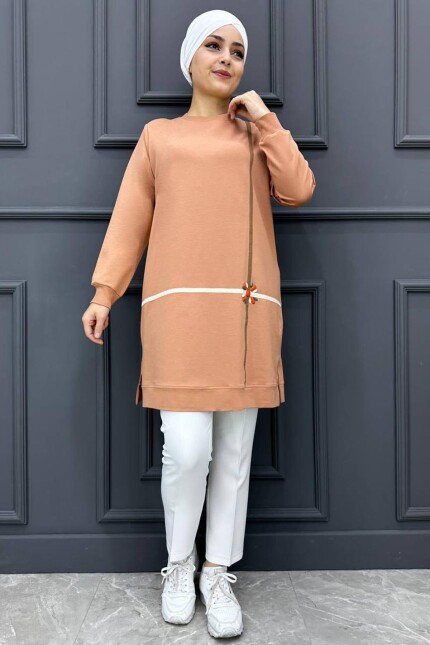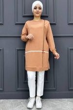 Kadın Garnili Bronş Detaylı Tesettür Tunik 71-SÜTLÜ KAHVE