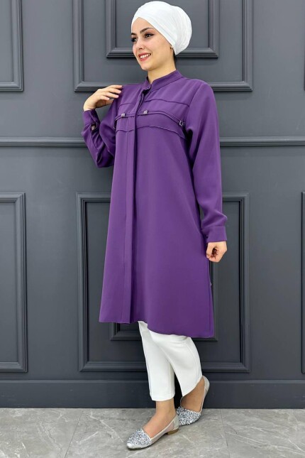 Kadın Göğüs Detaylı Hakim Yaka Gömlek PFC-1513-LİLA