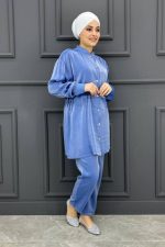 Kadın Hakim Yaka Simli Takım BYRV2024-1058-MAVİ