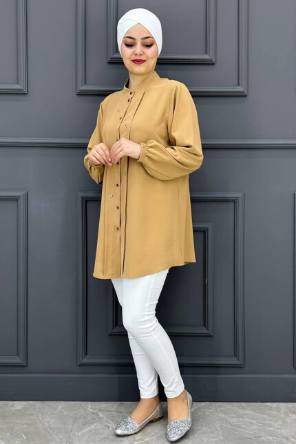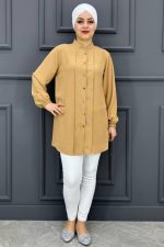 Kadın Hakim Yaka Taş Detaylı Tesettür Tunik MDE24210603-048-Sütlü Kahve