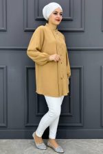 Kadın Kombin Ve Cebi Taş Detaylı Tesettür Tunik MDE24210608-048-Sütlü Kahve