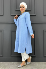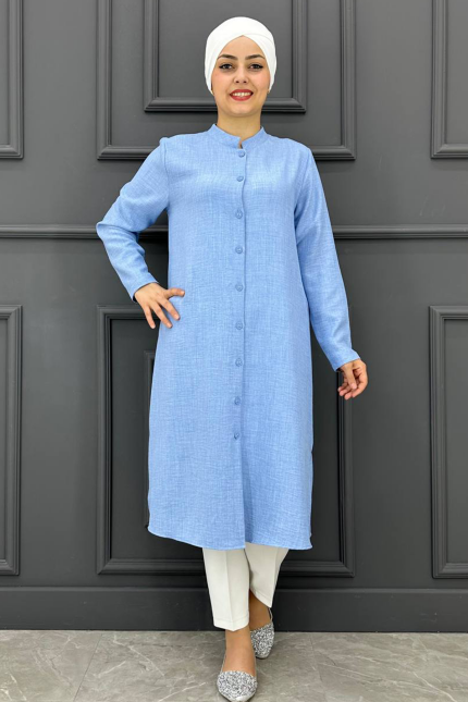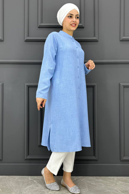 Kadın Hakim Yaka Tesettür Gömlek MDE24210547-080-Buz Mavisi