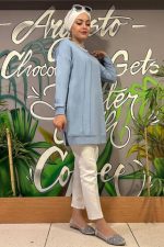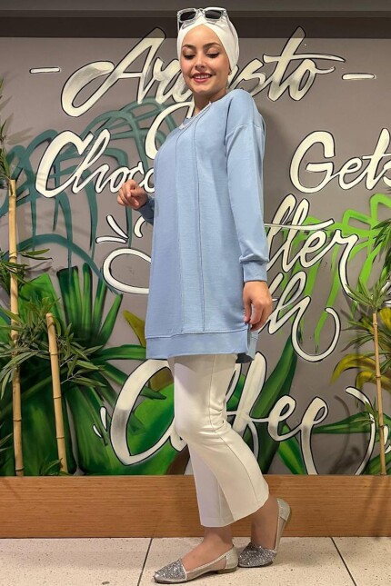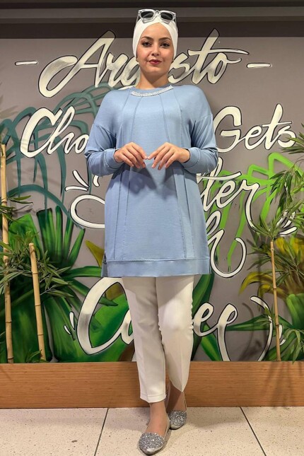 Kadın İnci Biye Detaylı Tesettür Tunik MDE24K00303-084-MAVİ