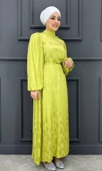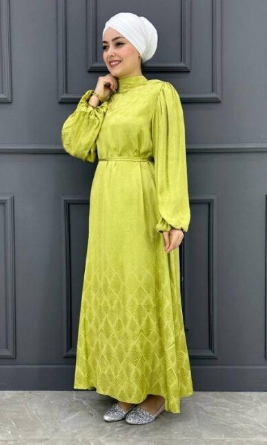 Kadın Jakarlı Elbise KSR-6900-YAĞ YEŞİLİ