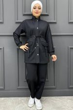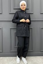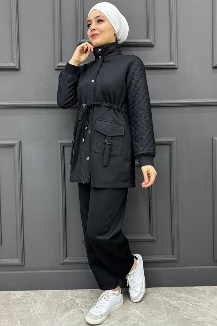 Kadın Kapitone Detaylı Cebi Kemerli Takım 274-SİYAH