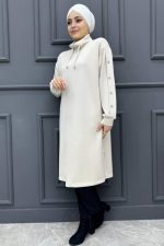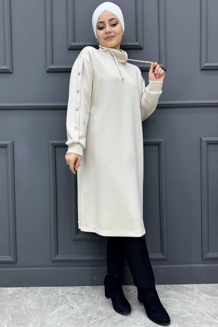 Kadın Kapşonlu Kolu Düğmeli Tunik 239-TAŞ