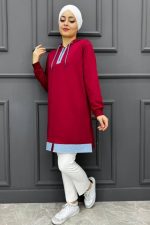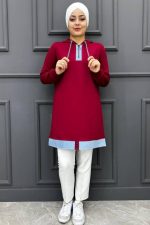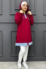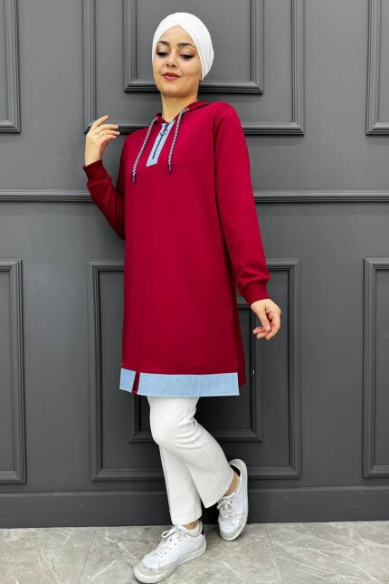 Kadın Kapüşonlu Tesettür Tunik 251-BORDO