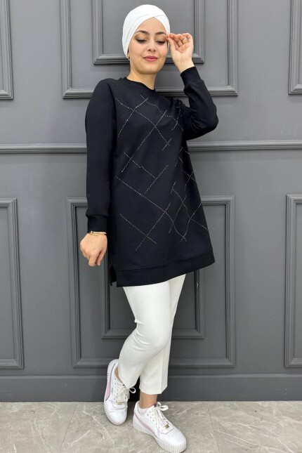 Kadın Kare Taş Detaylı Tesettür Tunik MDE24K10711-050-SİYAH