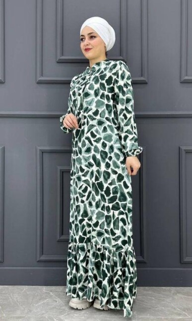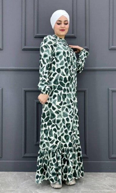 Kadın Karışık Taş Desenli Elbise EJD2024-23-HAKİ