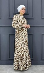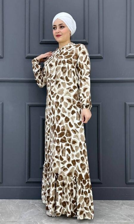 Kadın Karışık Taş Desenli Elbise EJD2024-23-KAHVERENGİ