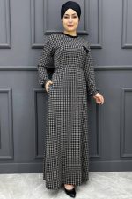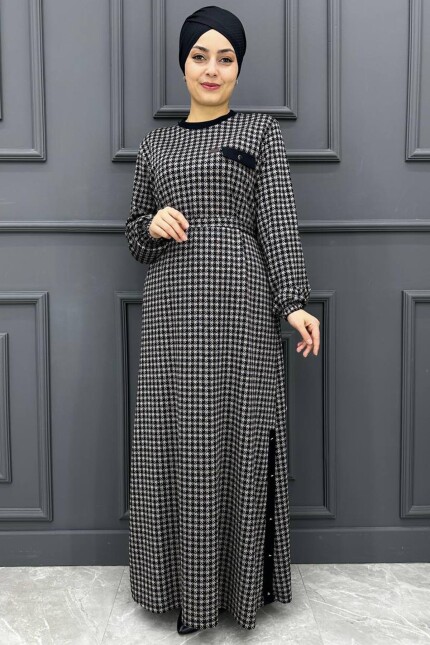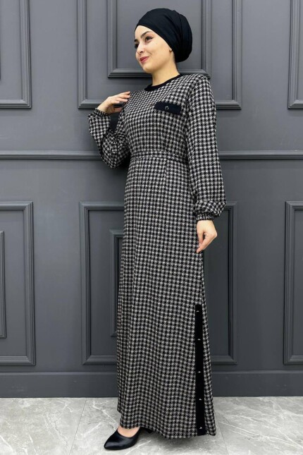 Kadın Kazayağı Elbise 111-SİYAH