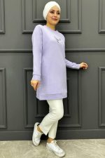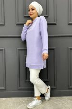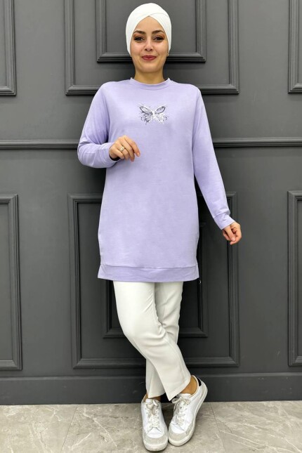 Kadın Kelebek Baskılı Detaylı Tesettür Tunik 248-LİLA