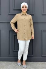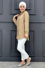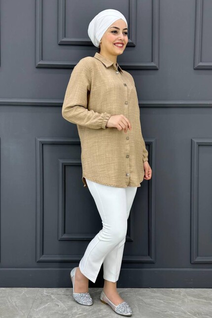 Kadın Kere Düğmeli Gömlek SM24-03-BEJ