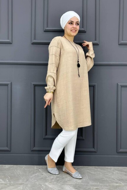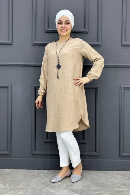 Kadın Kolları Nervür Detaylı Tesettür Tunik MDE24200043-080-Bej