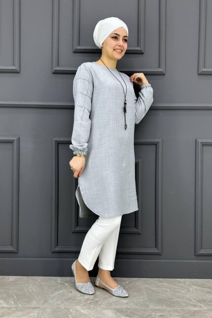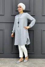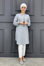 Kadın Kolları Nervür Detaylı Tesettür Tunik MDE24200043-080-Gri