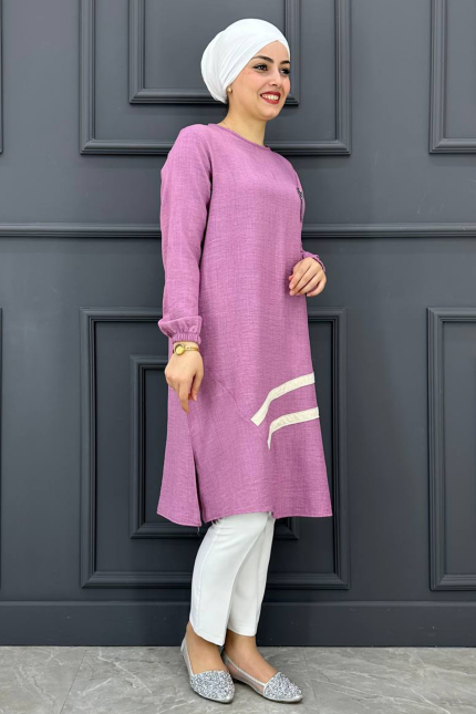 Kadın Kombin Geçişli Tesettür Tunik MDE24210570-080-Gül Kurusu