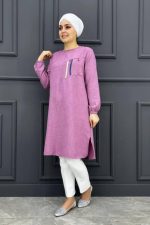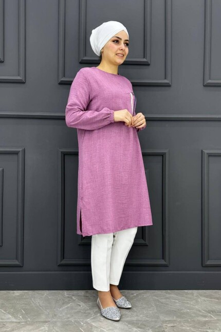 Kadın Kombin Üzeri Taş Detaylı Tesettür Tunik MDE24200234-080-Gül Kurusu