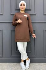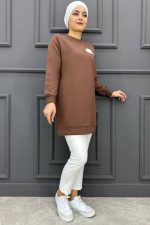 Kadın Kombin Ve Taş Detaylı Tesettür Tunik 54-KAHVERENGİ