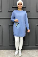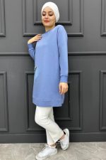 Kadın Kombinli Düğme Detaylı Tesettür Tunik 244-MAVİ