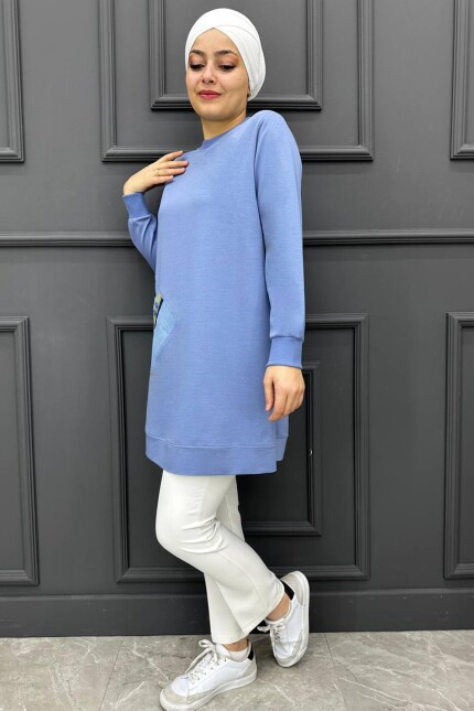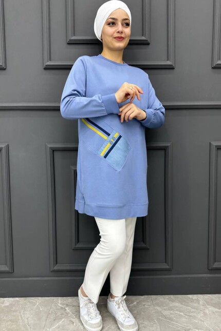 Kadın Kombinli Düğme Detaylı  Tesettür Tunik 244-MAVİ