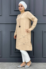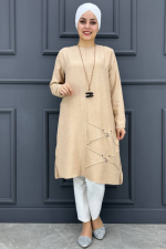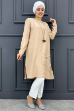Kadın Düğme Ve Taş Detaylı Tesettür Tunik MDE24210493-080-Bej